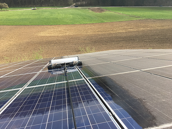 Für die Reinigung wird nur entmineralisiertes Wasser verwendet, da normales Leitungswasser Rückstände auf den Modulen hinterlässt. Wir verzichten auf jegliche Reinigungsmittel.